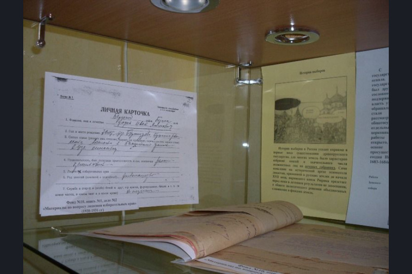 Особое внимание уделено истории избирательного права граждан. Например, в первой половине 20 века согласно статье 65 Конституции РСФСР 1918 г. определялись 7 категорий граждан, не имевших права избирать и быть избранными в Советы всех уровней. В архивном фонде Искитимского районного Совета народных депутатов хранятся материалы о лишении и восстановлении избирательных прав граждан Искитимского района (1930-32). В те далекие годы статус гражданина определялся не степенью образованности, не материальным положением, а наличием политических и гражданских прав. Принадлежность к «полноправным» или «лишенцам» играла решающую роль: если человек оказывался в списках «лишенцев», то его увольняли с работы, исключали из профсоюза и даже могли выселить его семью. На заседаниях президиума Искитимского крайисполкома рассматривались ходатайства граждан о восстановлении их в избирательных правах. Как свидетельствуют архивные протоколы данных заседаний, часть людей добивалась восстановления, но и отказов было достаточно.
